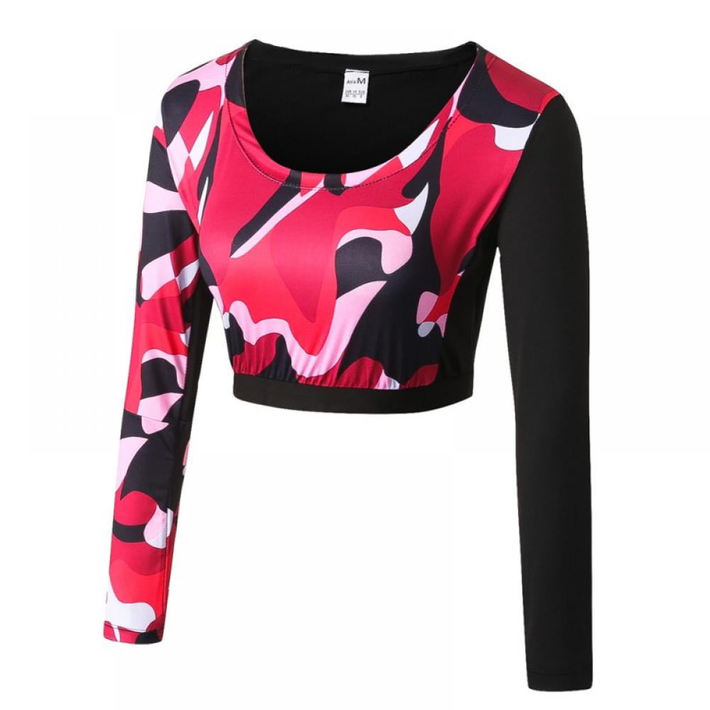 Women S Compression T Shirt Camouflage Long Sleeved Sports Training Shirt Quick Drying Breathable Yoga Fitness Shirt Red L Walmart Com